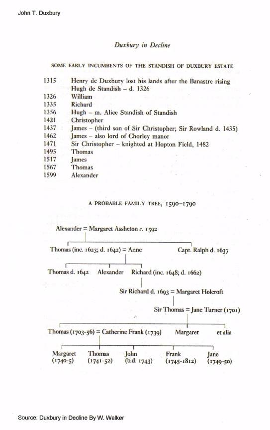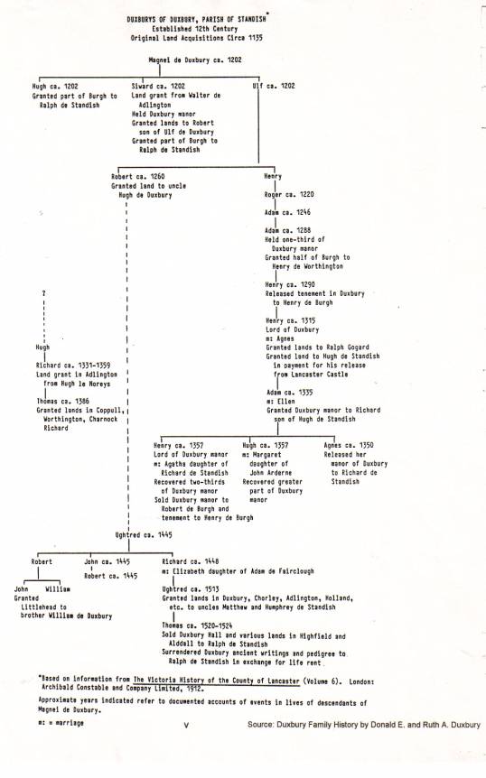Standish by Adam Duxbury in ca.1335. There is, also, a reference that Duxbury